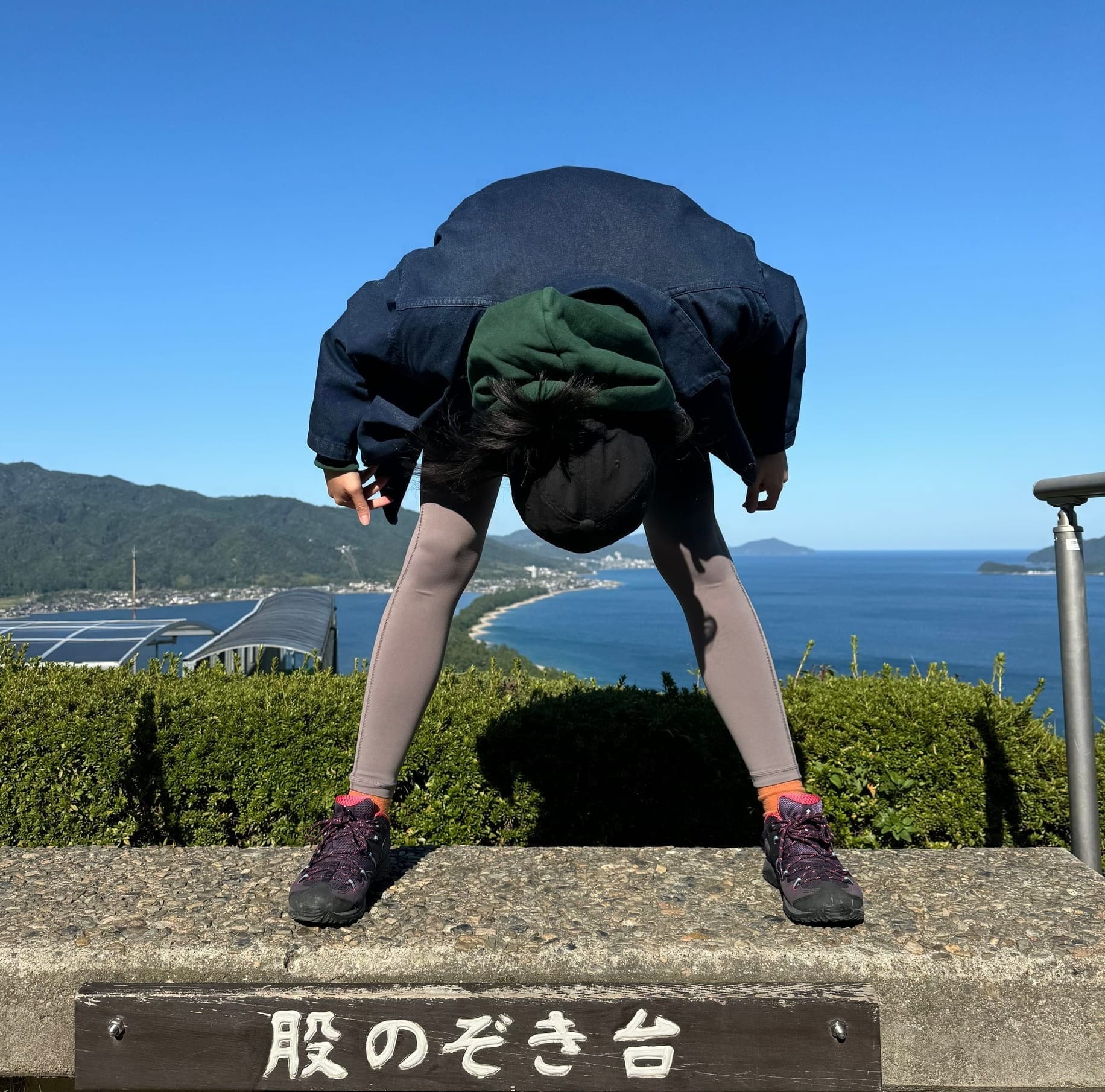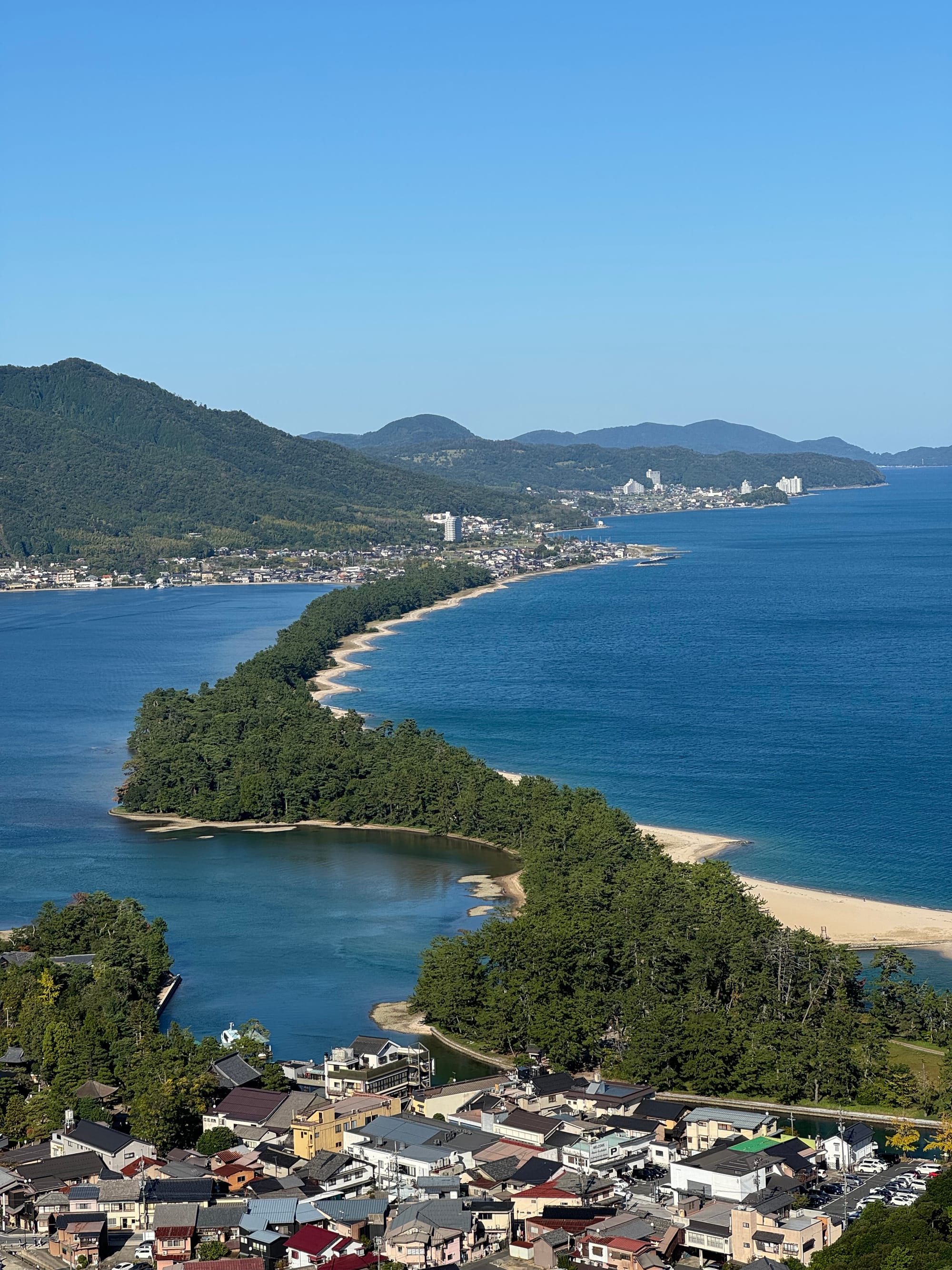 Walking across Amanohashidate towards Kono Shrine.