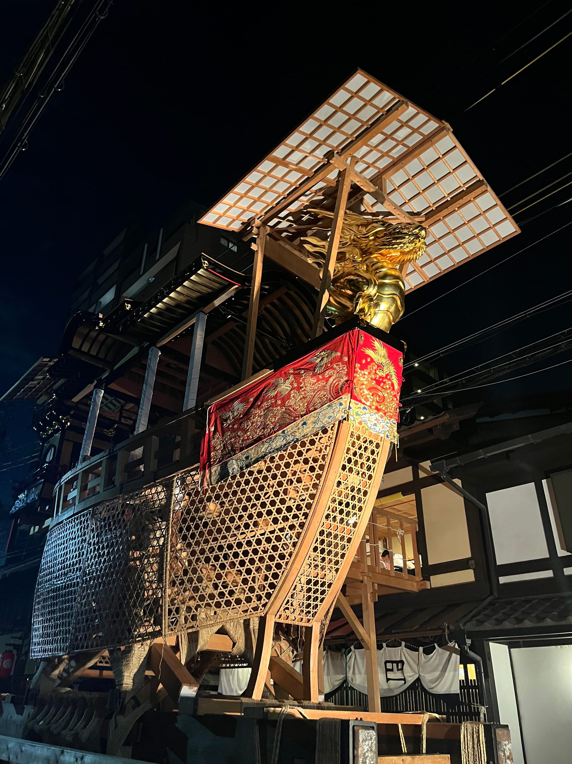 The kagome pattern is commonly used in Japanese culture for spiritual protection. Below, you can see how it is integrated in the design of a "Dragon Boat" float at Kyoto's annual Gion Festival for those very reasons.